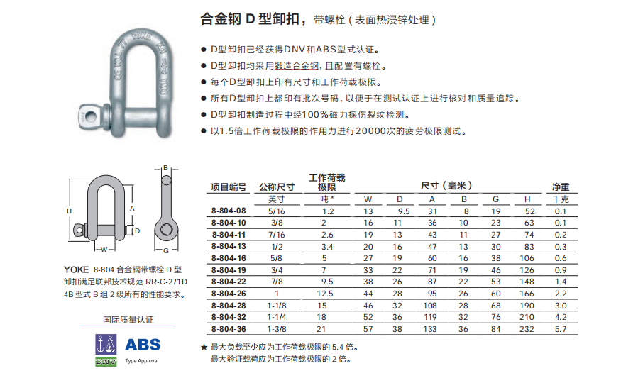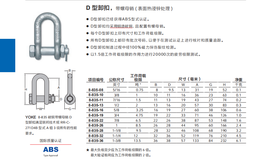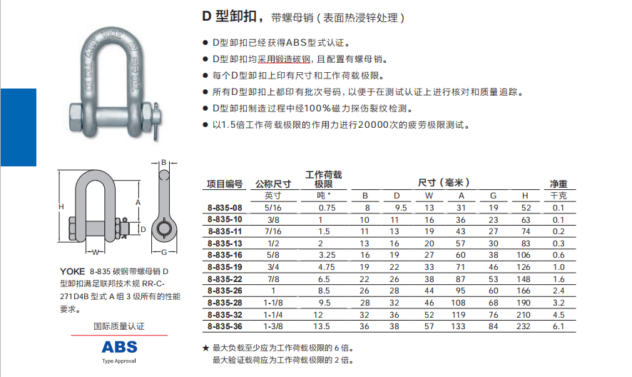 臺(tái)灣YOKE D 型卸扣( 表面熱浸鋅處理 )