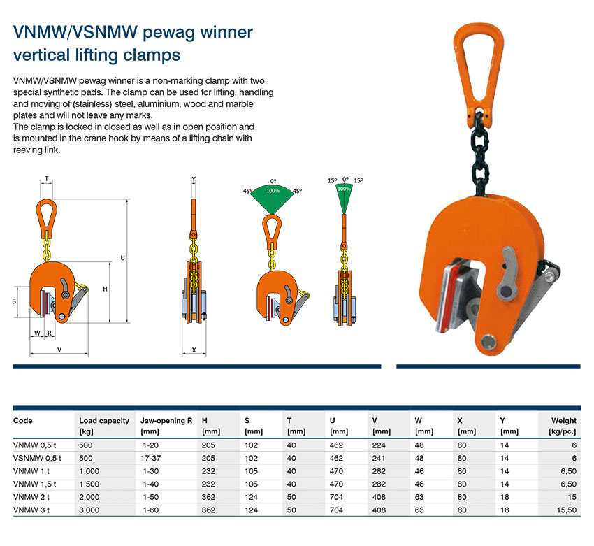 pewag無壓痕無咬痕起重鋼板鉗VNMWVSNMW型